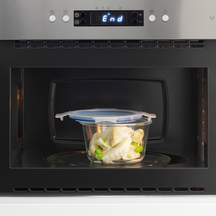 A 600 ml round container suitable for small dishes or side portions. The glass bowl is durable and oven-safe (without lid), while the plastic lid ensures freshness and spill protection. Great for work lunches or storing prepped ingredients.