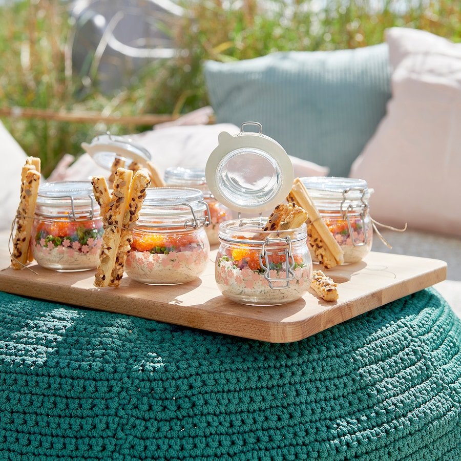 This petite 13 cl glass jar is great for spices, jams, or small servings of condiments. The fully transparent design allows for easy identification of contents, while the snug lid keeps ingredients fresh.