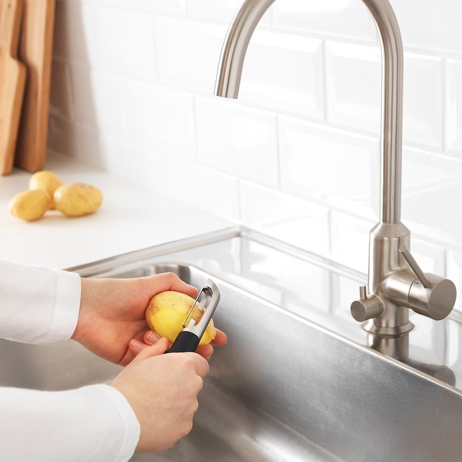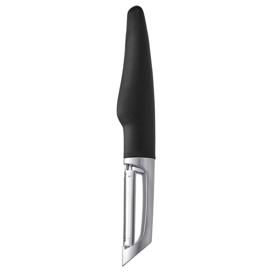 This sleek black potato peeler combines modern aesthetics with everyday practicality. Featuring a sharp, rust-resistant stainless steel blade, it quickly removes skin from vegetables and fruits with ease. The sturdy black handle offers a secure and comfortable grip, making it ideal for extended use. A versatile tool with a professional look, perfect for any kitchen setup.